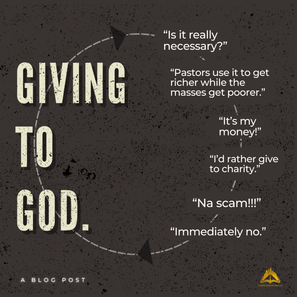We give to God because He is the first giver! He’s given us everything for life and godliness, and I don’t mean the Spiritual gifts either. From your food to your clothing to your gadgets and all your material things, God made them and gave it all to us for our use.